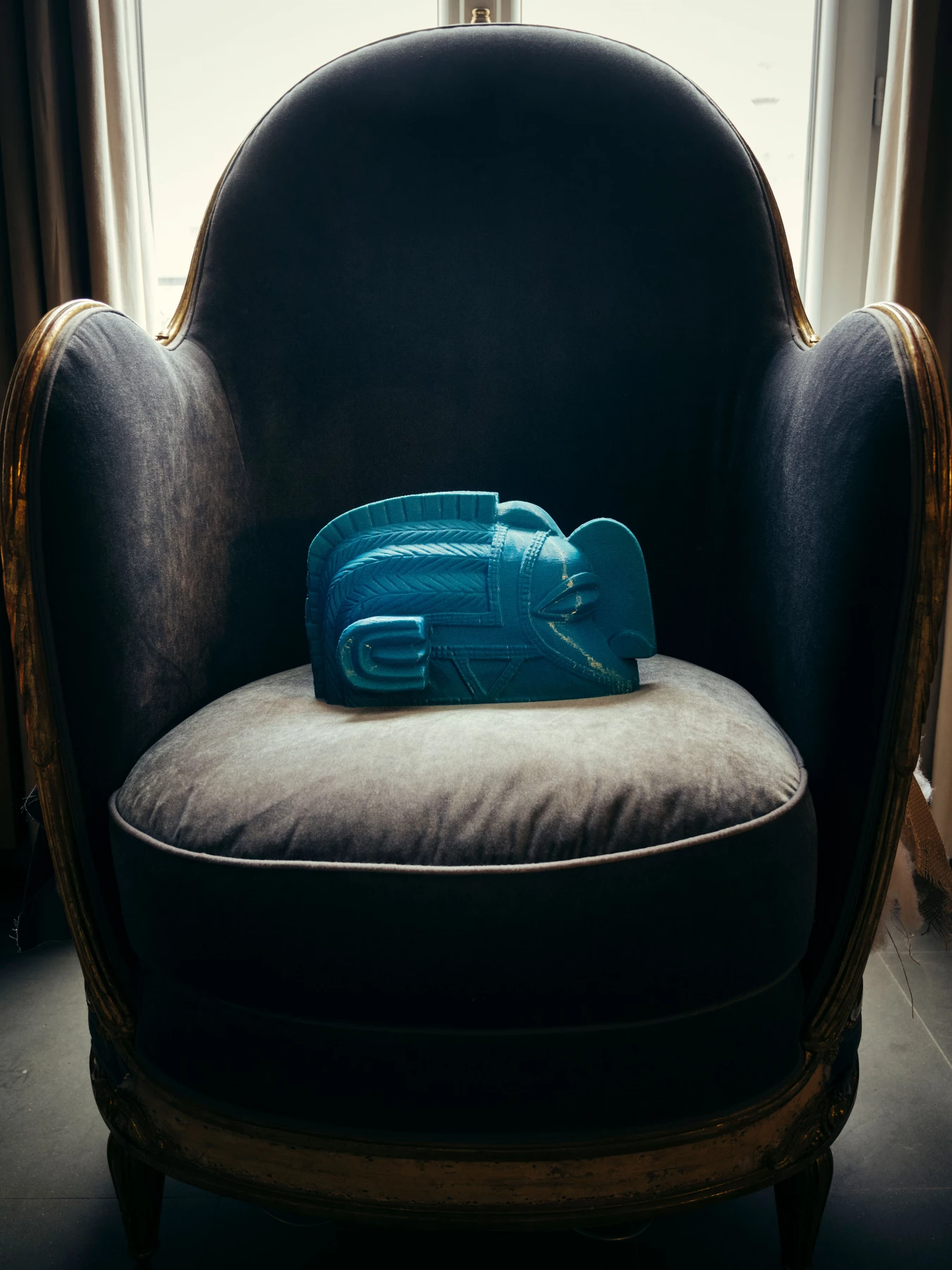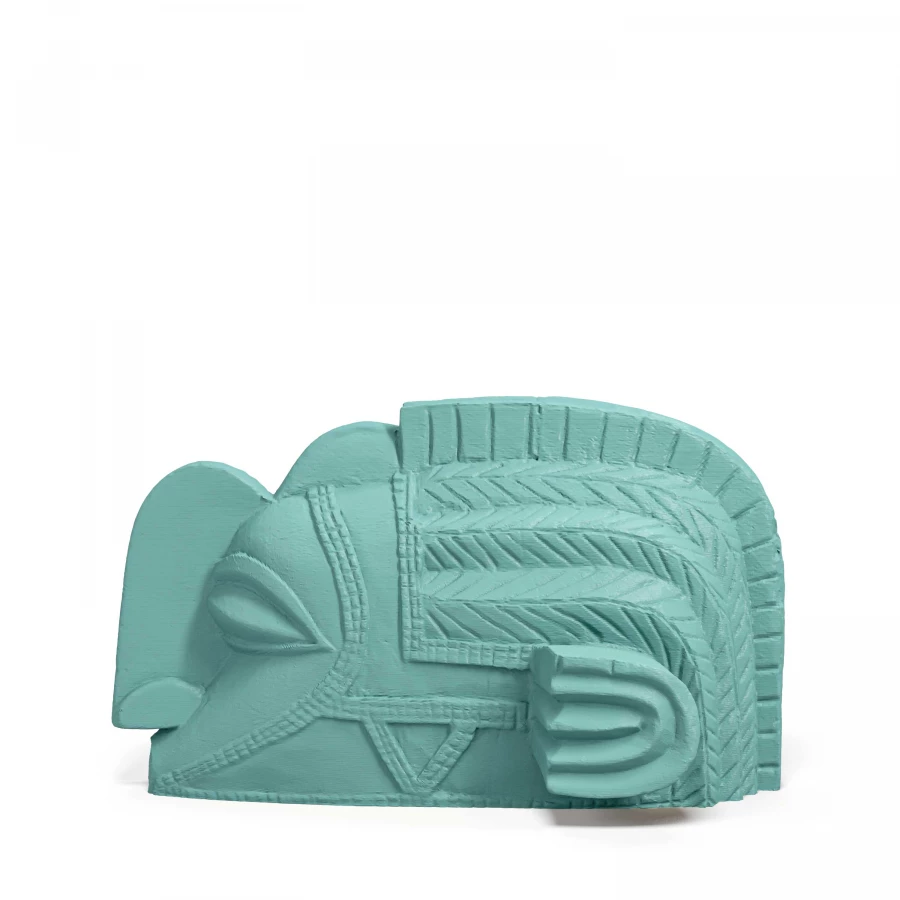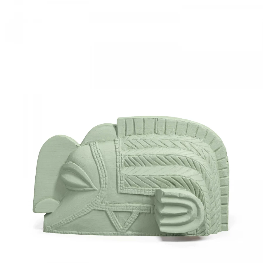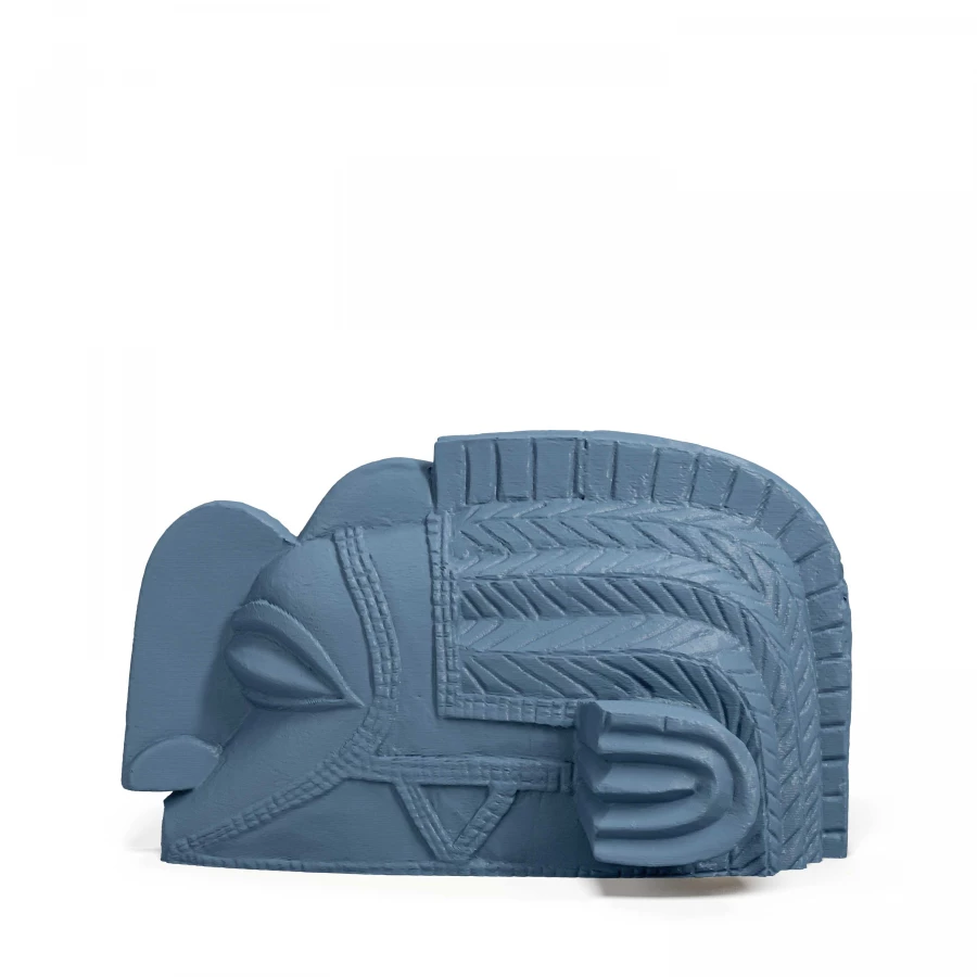 The elegantly curving outlines and imposing bulk of this artclone unite in a spiritual yet terrestrial composition, with light, recurrent decorations carved on the surfaces and surprisingly forceful anatomical features, such as the nose and eyes. These strong contrasts combined in such a mythical figure would be suitable for Minimalist settings or large Industrial style spaces.